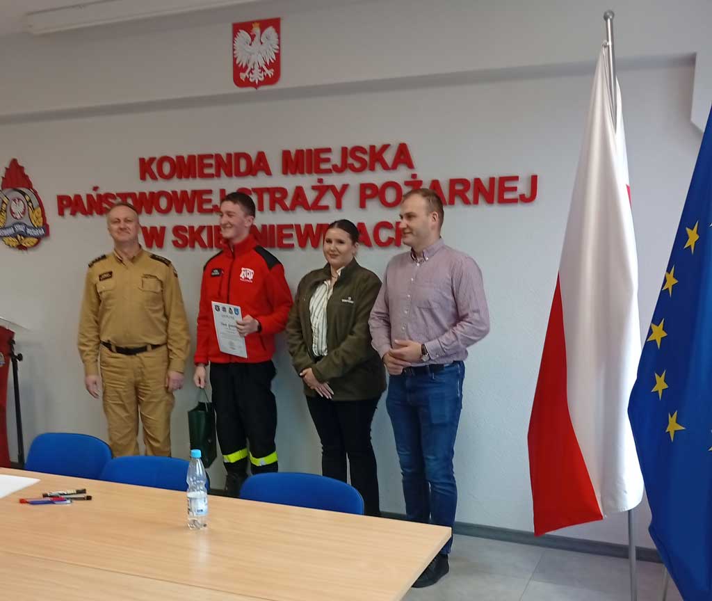 W dniu 26.03.2026 w Komendzie Miejskiej Państwowej Straży Pożarnej odbyły się eliminacje miejskie Ogólnopolskiego Turnieju Wiedzy Pożarniczej. W kategorii szkół ponadpodstawowych zwyciężył uczeń klasy IV e Karol Gruszecki. Warto przypomnieć, że w poprzedniej edycji Karol reprezentował województwo łódzkie w etapie centralnym i zajął bardzo dobre 5 miejsce.